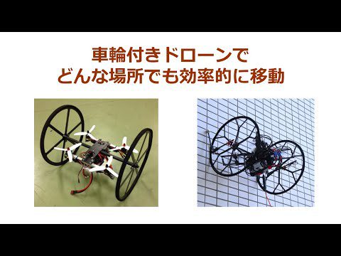 従来のドローンの、壁面や地面付近での動作が不安定になる・飛行時間が短いという短所を解決することが可能な「車輪付きドローン」の制御技術を開発します。