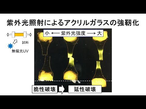 硬いが脆いアクリルガラスに紫外光を照射することで、脆性を改善し、曲げても割れにくくする技術です。 添加剤としてアゾベンゼンを用いますので、材料調製が容...
