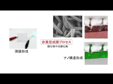 真空を使わない成膜方法(ディップコーティング、電気化学堆積法)のプロセスを工夫し、低抵抗率の酸化亜鉛薄膜の成膜やナノ構造の形成を可能にしました。
